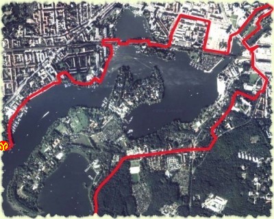 kleine Potsdamer Seentour - 054 - Einladende Badestelle mit Rückblick zur Brücke